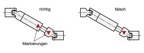 Durch falsch zusammengesteckte Gelenkwellen wird die Ungleichförmigkeit der Drehbewegung der einzelnen Gelenke nicht kompensiert, sondern verstärkt. Dadurch können Gelenklager und Keilprofile zerstört werden. Aus diesem Grund ist beim Zusammenstecken der Gelenkwellenhälften darauf zu achten, dass die an Keilwelle und Keilnabe angebrachten Markierungen gegenüberliegen.