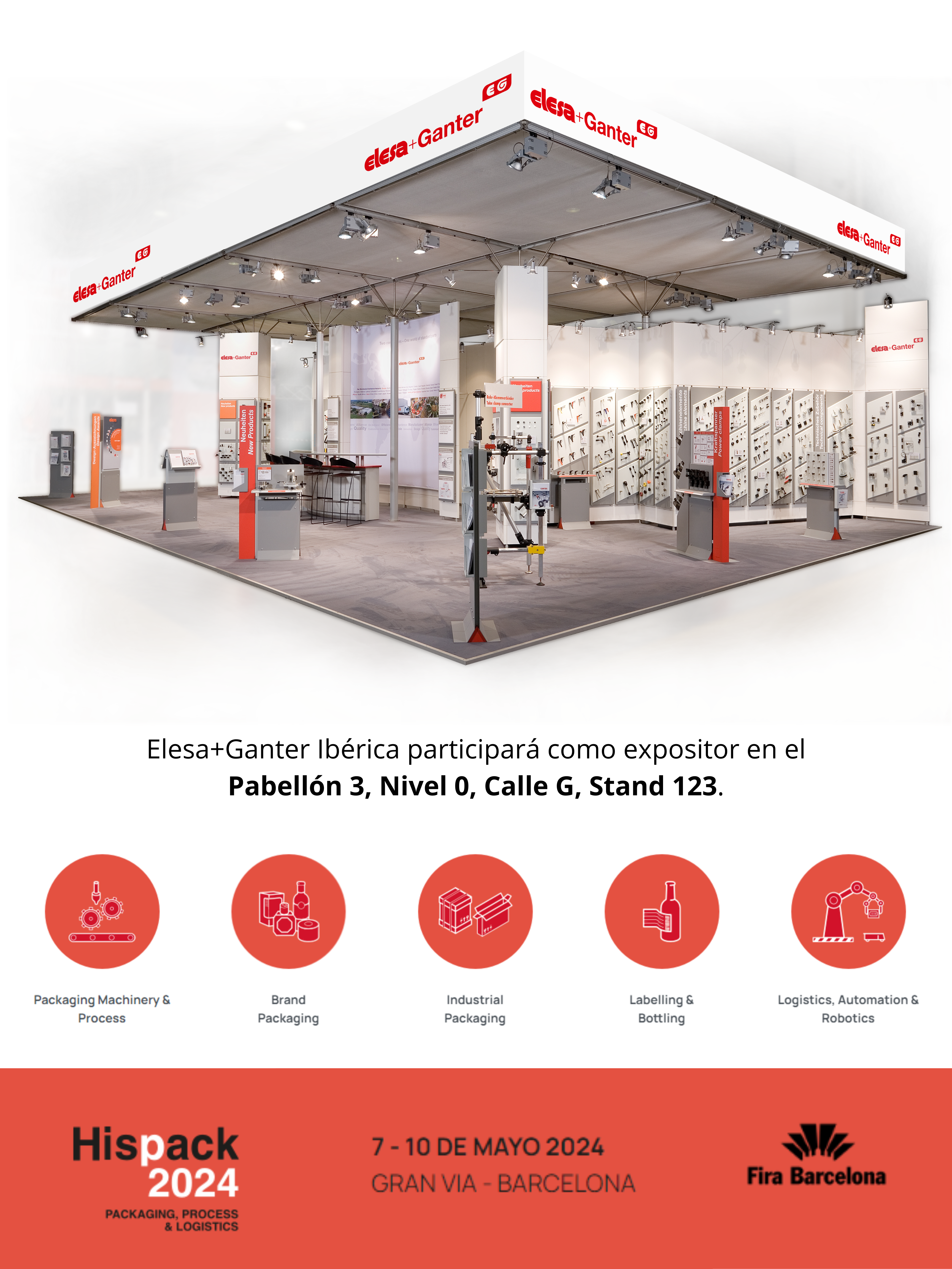 La semana del 7 al 10 de mayo se celebrará en Barcelona la feria Alimentaria Hispack donde Elesa+Ganter Ibérica participará como expositor en el Pabellón 3, Nivel 0, Calle G, Stand 123.