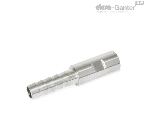 Los adaptadores de manguera GN 480.7 pueden acoplarse en, por ejemplo, boquillas de aire o refrigerante y en los conductos de alimentación de estas mediante abrazaderas, y permiten mantener dichas piezas en su posición.