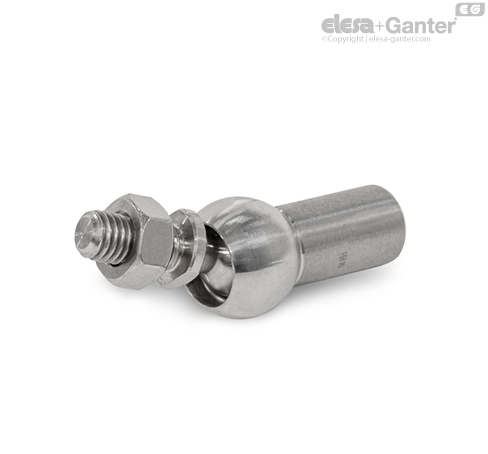Las rótulas axiales GN 71802.1 se utilizan en accionamientos lineales y sistemas de elevación, por ejemplo, para transmitir fuerzas de compresión en dirección axial, compensando así los desplazamientos angulares. Están formadas por un vástago de cabeza esférica DIN 71803 y un asiento de bola axial.