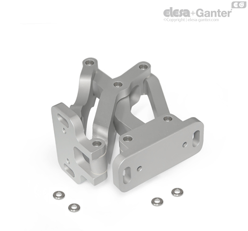 Pletinas de acero con agujeros roscados GN 7247.4 y pletinas de acero inoxidable con espárragos roscados GN 7247.6 también están disponibles para sujetar las bisagras. Estas se pueden soldar en la pared o se pueden insertar en ella desde el exterior y fijarse en su lugar. Los agujeros d2 permiten el montaje de pasadores de tensado o posicionamiento, lo que facilita colocar la bisagra en posición. Y también se evitan el giro o el deslizamiento indeseados bajo carga. Los pasadores no se pueden extraer para un ajuste posterior.
