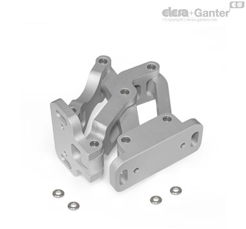 Pletinas de acero con agujeros roscados GN 7247.4 y pletinas de acero inoxidable con espárragos roscados GN 7247.6 también están disponibles para sujetar las bisagras. Estas se pueden soldar en la pared o se pueden insertar en ella desde el exterior y fijarse en su lugar. Los agujeros d2 permiten el montaje de pasadores de tensado o posicionamiento, lo que facilita colocar la bisagra en posición. Y también se evitan el giro o el deslizamiento indeseados bajo carga. Los pasadores no se pueden extraer para un ajuste posterior.