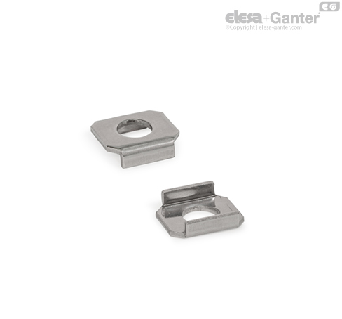 Las arandelas embridadas GN 898 se utilizan para fijar y posicionar elementos de presión en bridas de apriete con brazo de apriete abierto. Las correspondientes bridas de apriete se indican en la tabla.