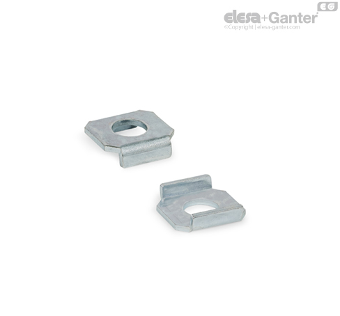 Las arandelas embridadas GN 898 se utilizan para fijar y posicionar elementos de presión en bridas de apriete con brazo de apriete abierto. Las correspondientes bridas de apriete se indican en la tabla.