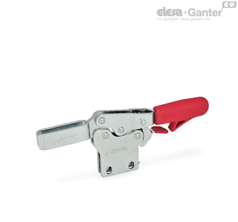 Trabajan según el principio de las bridas: la palanca y el brazo de apriete se mueven en la dirección opuesta. Esto requiere menos espacio para el efecto de apriete.