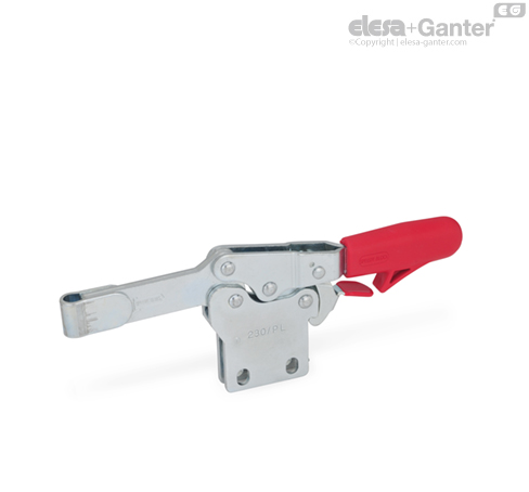 Trabajan según el principio de las bridas: la palanca y el brazo de apriete se mueven en la dirección opuesta. Esto requiere menos espacio para el efecto de apriete.