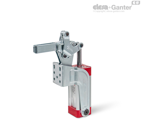 El mecanismo de sujeción de los cepos de palanca GN 862 es idéntico en construcción y dimensiones al de los cepos de palanca vertical de accionamiento manual GN 812.