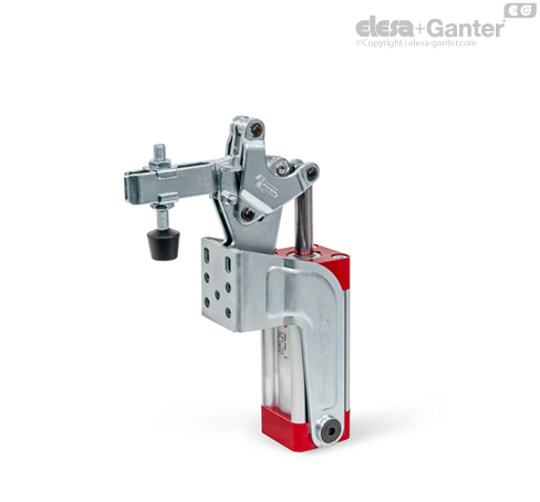 El mecanismo de sujeción de los cepos de palanca GN 862 es idéntico en construcción y dimensiones al de los cepos de palanca vertical de accionamiento manual GN 812.