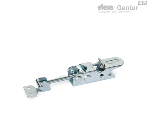 Para cierres de palanca GN 761.1 con mecanismo de bloqueo, cuando la palanca está cerrada, un gancho de seguridad encaja firmemente en la estructura base. Esto evita que la posición de apriete se libere involuntariamente o debido a vibraciones. Para abrir el cierre, el gancho de seguridad se puede desbloquear con una sola mano.