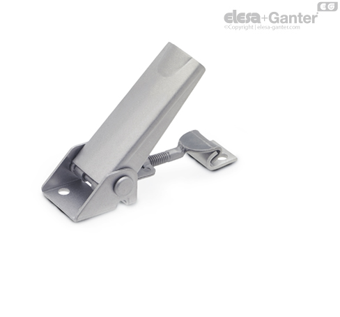 Las bridas de sujeción de gancho GN 831 se utilizan por ejemplo para realizar agarres seguros de cubiertas y tapas de contenedores. El gancho de tracción se fija firmemente sobre el centro lo que las hace resistentes a las vibraciones.