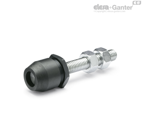 Para pasar el punto muerto del centro y / o compensar las tolerancias de la pieza de trabajo al usar abrazaderas de palanca accionadas manualmente, una almohadilla de empuje elástica como la GN 708.1- se puede usar.