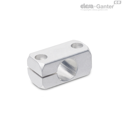Las abrazaderas de montaje GN 477 no tienen agujeros roscados. La fijación o sujeción se realiza mediante dos agujeros roscados en la cara de montaje.