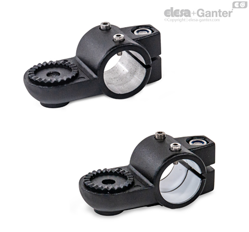 Las abrazaderas articuladas para actuadores lineales GN 278.1 se basan en abrazaderas articuladas para actuadores. Los orificios de montaje provistos adicionalmente se usan para conectar la tuerca deslizante de un actuador lineal. Los orificios con la designación G están equipados con cojinetes de deslizamiento.