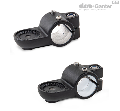 Las abrazaderas articuladas para actuadores lineales GN 278.1 se basan en abrazaderas articuladas para actuadores. Los orificios de montaje provistos adicionalmente se usan para conectar la tuerca deslizante de un actuador lineal. Los orificios con la designación G están equipados con cojinetes de deslizamiento.