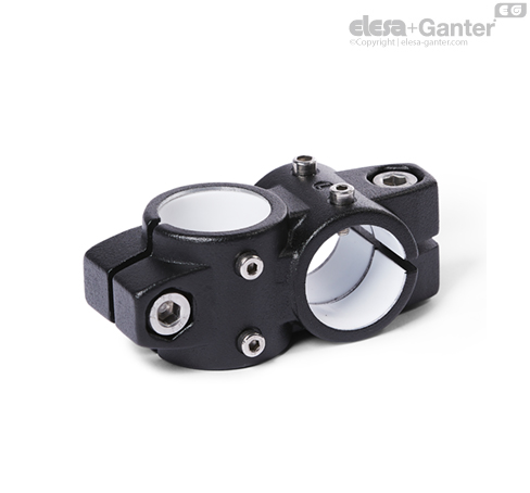 Las abrazaderas para unidades lineales de dos ejes GN 132.2 se basan en conectores de dos ejes. Los orificios de montaje provistos adicionalmente se usan para conectar la tuerca deslizante de un actuador lineal. Los orificios con la designación G están equipados con cojinetes de deslizamiento.