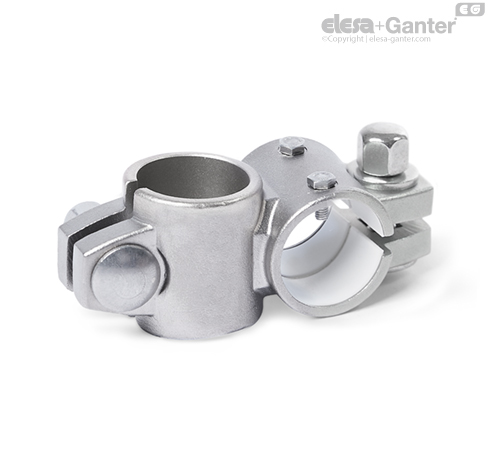 Los conectores de actuadores lineales de dos ejes GN 132.15 se basan en conectores de dos ejes. Los orificios de montaje provistos adicionalmente se usan para conectar la tuerca deslizante de un actuador lineal. Los orificios con la designación G están equipados con cojinetes de deslizamiento.
