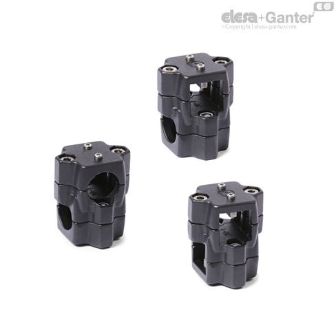 Las abrazaderas de actuadores lineales de dos ejes GN 134.2 se basan en conectores de dos ejes. Los orificios de montaje provistos adicionalmente se usan para conectar la tuerca deslizante de un actuador lineal.