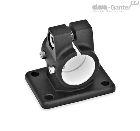 Los conectores de actuadores lineales con bridas GN 146.1 se basan en abrazaderas para conectores con bridas. Los orificios de montaje provistos adicionalmente se usan para conectar la tuerca deslizante de un actuador lineal. Los orificios con la designación G están equipados con cojinetes de deslizamiento.