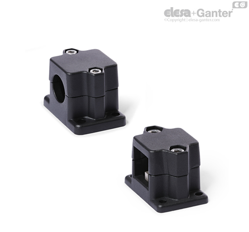 Los conectores de actuadores lineales con bridas GN 147.1 se basan en abrazaderas para conectores con bridas. Los agujeros de montaje provistos adicionalmente se usan para conectar la tuerca deslizante de un actuador lineal.
