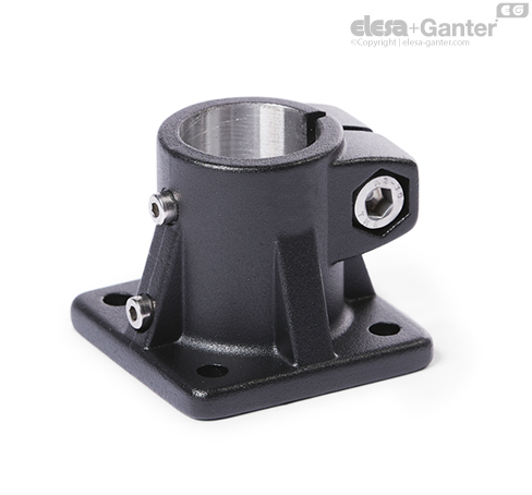 Los conectores para actuadores lineales de placa base GN 163.1 se basan en abrazaderas para conectores de placa base. Los orificios de montaje provistos adicionalmente se usan para conectar la llave de impulsión de un actuador lineal. Los orificios con la designación G están equipados con cojinetes de deslizamiento.
