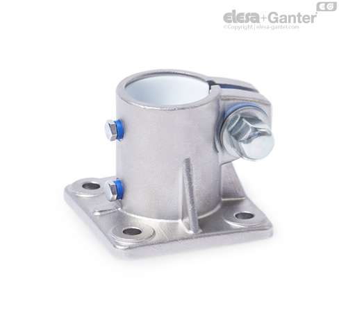Las abrazaderas para actuadores lineales con bridas GN 163.15 se basan en conectores con bridas. Los orificios de montaje provistos adicionalmente se usan para conectar la tuerca deslizante de un actuador lineal. Los orificios con la designación G están equipados con cojinetes de deslizamiento.