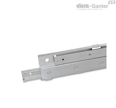 La limitación de la distancia de deslizamiento máxima debe realizarse mediante elementos externos; los soportes del riel han sido diseñados para evitar la extracción involuntaria de la guía del riel.