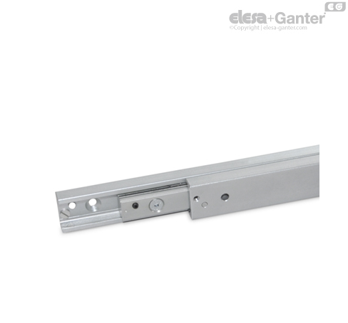 Las guías telescópicas de movimiento lineal GN 2410 constan de dos rieles de movimiento lineal por bolas conectados en las guías. Se utilizan, por ejemplo, para la manipulación o automatización de aplicaciones o la realización de moldes para movimiento deslizante en sentido lineal si se requieren recorridos largos con una altura de construcción del riel baja.