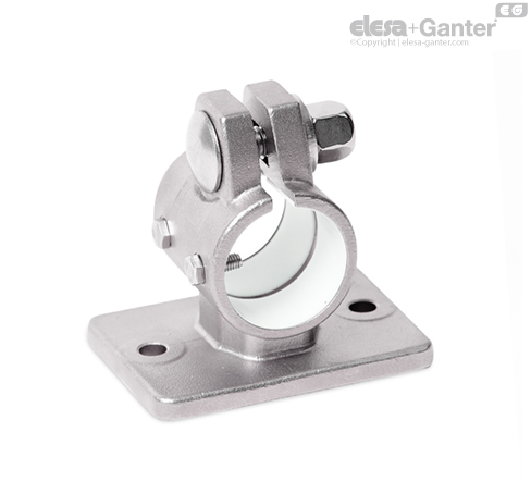 Las abrazaderas para actuadores lineales con bridas GN 146.16 se basan en conectores con bridas. Los orificios de montaje provistos adicionalmente se usan para conectar la tuerca deslizante de un actuador lineal. Los orificios con la designación G están equipados con cojinetes de deslizamiento.
