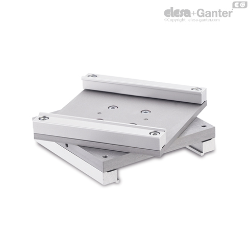 Las placas giratorias GN 900.5 permiten la rotación de uno de los dispositivos corredizos ajustables sobre el eje, mientras el otro permanece fijo. Esta posibilidad permite otra configuración del eje.