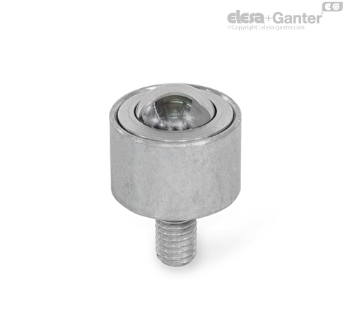 Los elementos de deslizamiento con bola cuentan con una varilla roscada en la parte inferior para la fijación. La carga se transfiere a través de la base de la carcasa para el tipo A y a través del anillo de tope para el tipo B.