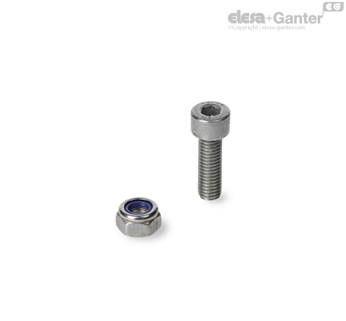 Tornillos de cabeza cilíndrica con hueco hexagonal, tratamiento antiagarrotamiento y tuerca autoblocante.