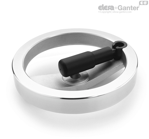 Los volantes de banda diametral GN 322.3 son particularmente indicados cuando la empuñadura debe retirarse de la posición de operación. Para colocar la empuñadura en esta posición, primero se la debe girar 90º hacia un muelle de torsión y luego se la empuja contra el muelle hasta alcanzar la posición de bloqueo.
