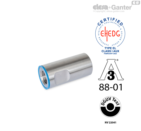 Los casquillos GN 20.1 cumplen las normas EHEDG, las 88-01 sanitarias 3-A y los principios del test DGUV, lo que los convierte en extremádamente adecuados para su uso en areas higiénicas.
