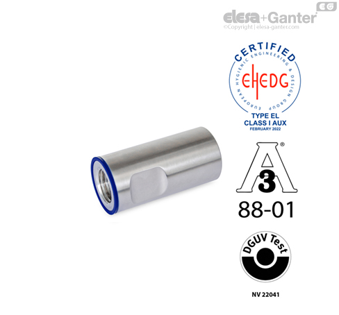 Los casquillos GN 20.1 cumplen las normas EHEDG, las 88-01 sanitarias 3-A y los principios del test DGUV, lo que los convierte en extremádamente adecuados para su uso en areas higiénicas.