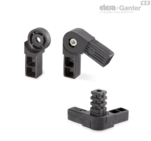 Adecuado para crear estructuras compuestas por perfiles cuadrados. El montaje se lleva a cabo simplemente colocando el conector y forzándolo dentro del perfil, sin necesidad de tornillos ni otros elementos de fijación.