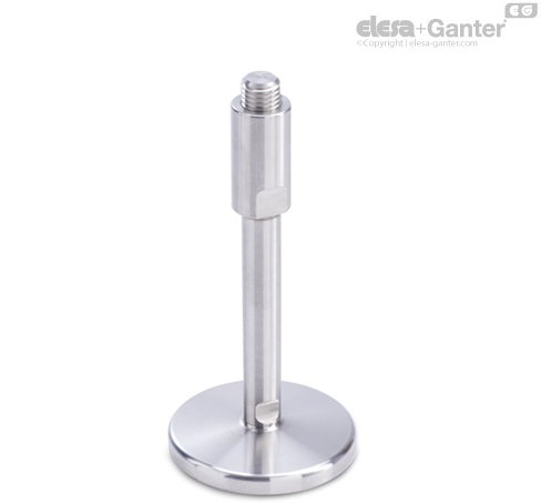 Con espárragos roscados de M10 y superiores, la carga estática de los elementos de nivelación de acero inoxidable GN 21 está limitada debido a la presión de contacto admisible del espárrago roscado que actúa sobre la base de apoyo (con una resistencia del eje ≥ 500 N/mm2). En los valores que se representan en la tabla (válidos para el tipo D0 sin disco inferior de goma) se asume una carga de presión exactamente perpendicular a la placa base. Se debe de tener en cuenta que los esfuerzos de flexión y pandeo que a menudo se producen en la práctica se traducen en una menor capacidad de carga del espárrago roscado.