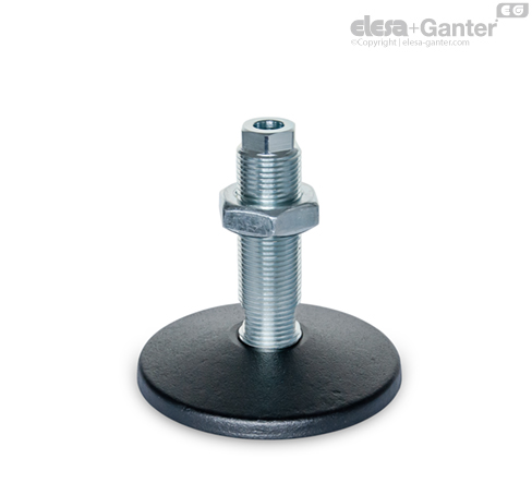 Las patas de máquina GN 37 se caracterizan por su construcción sólida y por su gran variedad. Se utilizan especialmente en sistemas y máquinas grandes y pesados. El agujero pasante permite unir las patas de la máquina de forma centrada en el suelo, lo que las convierte en piezas ideales para cargas de compresión y de tracción.
