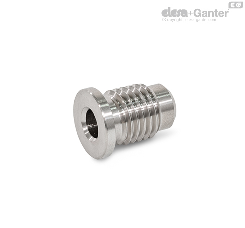 Los casquillos de retención GN 1140 están diseñados para pasadores de bloqueo de bolas, como los GN 113.3, o pasadores de fijación GN 114.2 . Se usan cuando el grosor de la pared existente es fino o para instalación en orificios ciegos. También proporcionan refuerzo cuando el pasador de fijación o el pasador de bloqueo de bolas se usan con materiales blandos y sensibles.