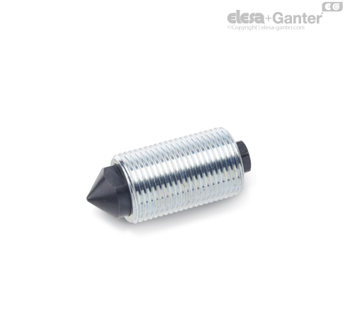 Los pivotes roscados con muelle GN 513 son elementos de presión universales que se utilizan para bloquear, posicionar o fijar piezas por medio de la carga de presión del muelle. El pivote accionado por muelle puede utilizarse para operaciones de empuje y operaciones de empuje y tracción. Además la punta del pivote no puede girarse bajo presión del muelle.