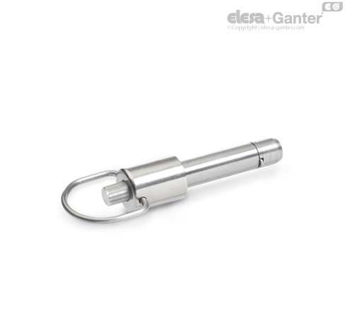 Los pasadores con bloqueo de acero inoxidable GN 214.6 se utilizan para la fijación rápida, conexión y bloqueo de diversos sistemas de engranaje y fijación. Una aplicación típica son los pasadores de posicionamiento que han de retirarse y colocarse nuevamente con frecuencia.
