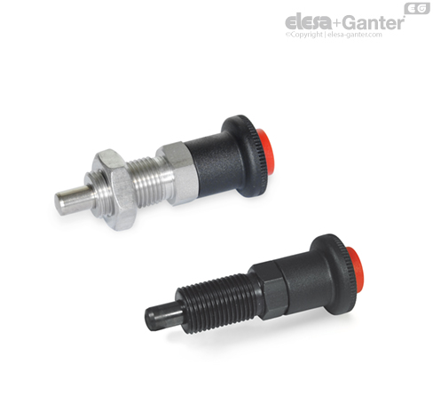 Los posicionadores de seguridad GN 414 se usan para evitar movimientos involuntarios del pasador del pivote. El pasador del pivote está bloqueado y sólo se puede desbloquear mediante el botón rojo de seguridad