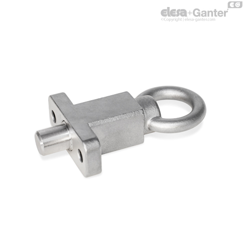 La versión con bloqueo de posición se utiliza cuando el pasador no debe sobresalir de manera temporal. Para ello, el anillo se gira lateralmente después de que el perno de cierre se haya retraído. El anillo se mantiene en esta posición gracias a la ranura de cierre de la parte superior de la guía.