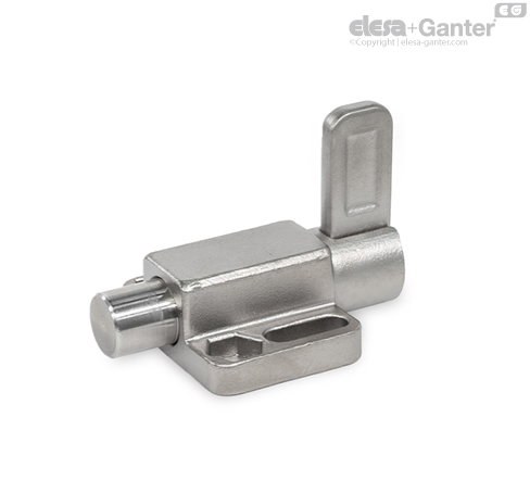 En los posicionadores de muelle GN 722.6, el pivote de retención se acciona mediante el anillo o la palanca. Esto se lleva a cabo manualmente, con un cable o mediante una varilla alargada con gancho. La versión ST ha sido diseñada para aplicaciones en construcciones de acero, mientras que la versión en acero inoxidable A4 está indicada para su uso en entornos especialmente agresivos.