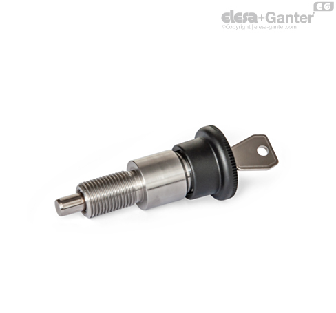 Los posicionadores de acero inoxidable bloqueables GN 814 se utilizan para aplicaciones en las que hay que prevenir un uso no autorizado. Los tipos A y AK fijan el pivote del posicionador en la posición frontal después del bloqueo. Los tipos E y EK fijan el pivote del posicionador en la posición posterior si no tiene que sobresalir temporalmente.