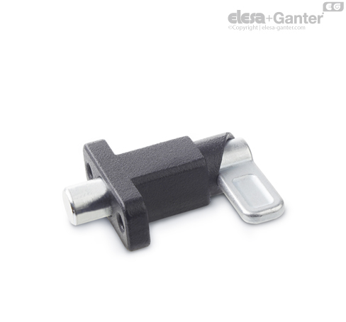 Con los pestillos de muelle GN 722.2, el pasador de retención se retrae a lo largo de la curva de la guía al girar la palanca del pestillo 180°. La muesca de la parte superior de la curva hace que la palanca quede retenida si, de manera transitoria, no se desea que el pasador sobresalga. Las versiones ZB y SW se han diseñado para aplicaciones fabricadas en acero, mientras que la versión en acero inoxidable A4 está indicada para ser utilizada en entornos especialmente agresivos.