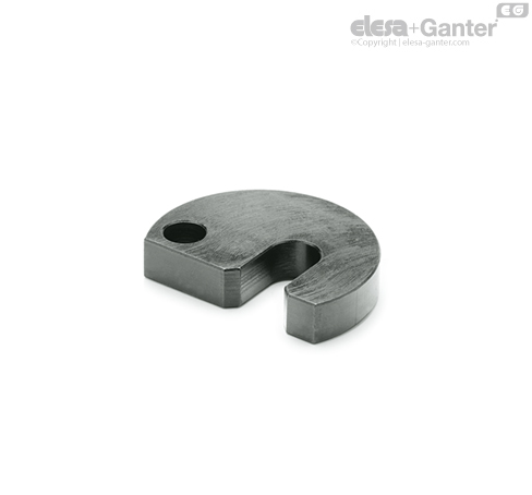 Las arandelas en C cautivas DIN 6371 transfieren el esfuerzo de bloqueo del tornillo o de la tuerca a la pieza a trabajar. Tras soltar la rosca, se pueden posicionar en el punto de bloqueo. Se suelen fijar para evitar que se pierda.