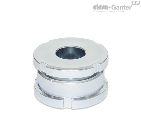 Comprenden un casquillo roscado superior y un casquillo roscado inferior hembra. El roscado proporciona continuidad y precisión en las operaciones de regulación y bloqueo, utilizando la llave en C DIN 1810 . Un disco antirrotación sirve también como limitador de altura máxima.