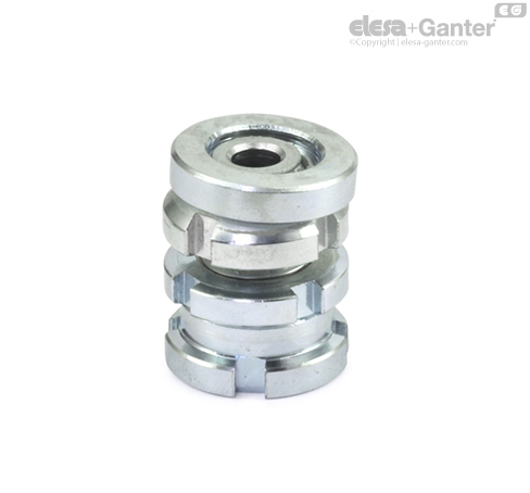Comprenden un casquillo roscado superior y un casquillo roscado inferior hembra. El roscado proporciona continuidad y precisión en las operaciones de regulación y bloqueo, utilizando la llave en C DIN 1810 . Un disco antirrotación sirve también como limitador de altura máxima.