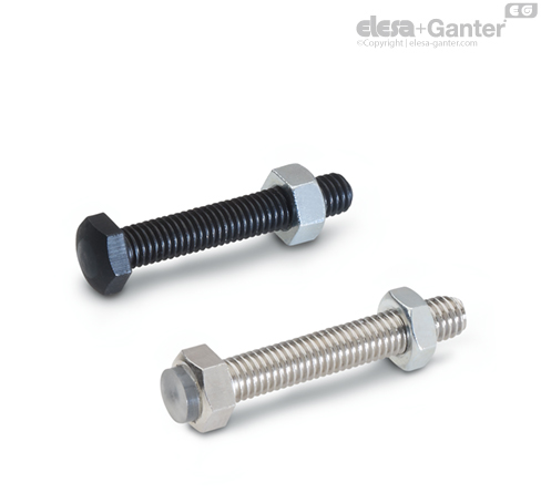 Los tornillos de tope GN 251 se fabrican con una cabeza endurecida y redondeada que puede usarse como soporte o como tope terminal.