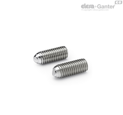 Los tornillos de fijación con elemento terminal de bola GN 605 con bola completa (Tipo A / Tipo AN) se utilizan en aquellas aplicaciones en las que se requiere un punto de contacto en forma de bola.